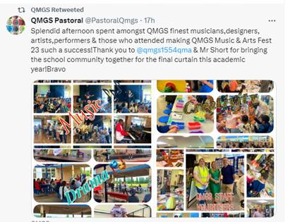 Organises the annual Art Festival at the end of the summer term, bringing together the music, art and DT departments |
